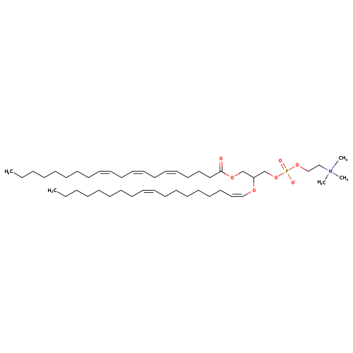 | YMDB02103 | PC(20:3(5Z,8Z,11Z)/P-18:1(11Z)) | [2-({3-[(5Z,8Z,11Z)-icosa-5,8,11-trienoyloxy]-2-[(1Z,11Z)-octadeca-1,11-dien-1-yloxy]propyl phosphonato}oxy)ethyl]trimethylazanium | C46H84NO7P 794.1354 | |