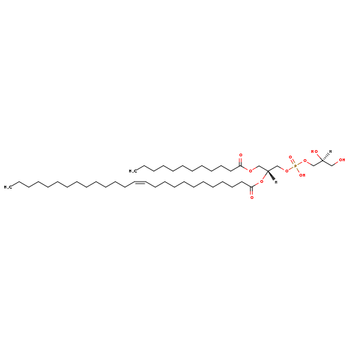 | YMDB14788 | PG(14:0/24:1(11Z)) | [(2S)-2,3-dihydroxypropoxy][(2R)-2-[(11Z)-tetracos-11-enoyloxy]-3-(tetradecanoyloxy)propoxy]phosphinic acid | C44H85O10P 805.128 |