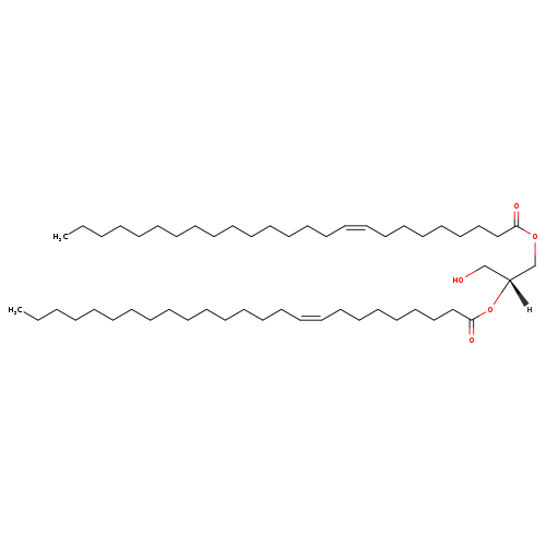 | YMDB13264 | DG(25:1(9Z)/25:1(11Z)/0:0) | (2R)-3-hydroxy-2-[(11Z)-pentacos-11-enoyloxy]propyl (9Z)-pentacos-9-enoate | C53H100O5 817.378 | |