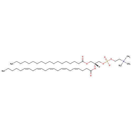 | YMDB01949 | PC(18:1(9Z)/22:4(7Z,10Z,13Z,16Z)) | (2-{[(2R)-2-[(7Z,10Z,13Z,16Z)-docosa-7,10,13,16-tetraenoyloxy]-3-[(9Z)-octadec-9-enoyloxy]propyl phosphonato]oxy}ethyl)trimethylazanium | C48H86NO8P 836.1721 |