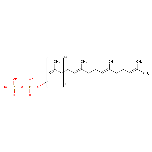 | YMDB00184 | di-trans,poly-cis-Decaprenyl diphosphate | [({[(2Z,6Z,10Z,14Z,18Z,22Z,26Z,30E,34E)-3,7,11,15,19,23,27,31,35,39-decamethyltetraconta-2,6,10,14,18,22,26,30,34,38-decaen-1-yl]oxy}(hydroxy)phosphoryl)oxy]phosphonic acid | C50H84O7P2 859.1453 | |