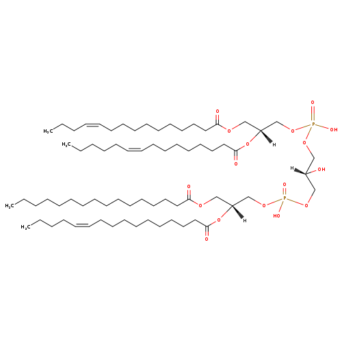 | YMDB05779 | CL(12:0/15:1(11Z)/15:1(9Z)/20:1(11Z)) | [(2S)-3-({[(2R)-3-(dodecanoyloxy)-2-[(11Z)-pentadec-11-enoyloxy]propoxy](hydroxy)phosphoryl}oxy)-2-hydroxypropoxy][(2R)-2-[(11Z)-icos-11-enoyloxy]-3-[(9Z)-pentadec-9-enoyloxy]propoxy]phosphinic acid | C71H132O17P2 1319.768 | |