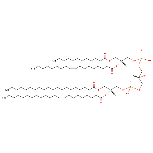 | YMDB09530 | CL(14:1(9Z)/16:0/20:0/22:1(9Z)) | [(2R)-2-[(9Z)-docos-9-enoyloxy]-3-(icosanoyloxy)propoxy][(2S)-3-({[(2R)-2-(hexadecanoyloxy)-3-[(9Z)-tetradec-9-enoyloxy]propoxy](hydroxy)phosphoryl}oxy)-2-hydroxypropoxy]phosphinic acid | C81H154O17P2 1462.054 | |