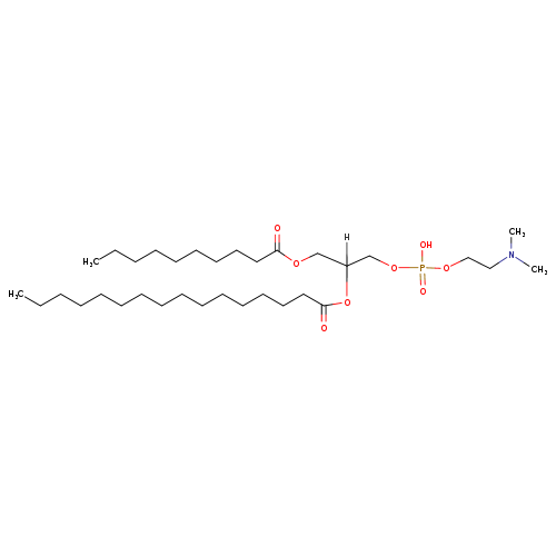 | YMDB13694 | PE-NMe2(10:0/16:0) | [3-(decanoyloxy)-2-(hexadecanoyloxy)propoxy][2-(dimethylamino)ethoxy]phosphinic acid | C33H66NO8P 635.864 | |