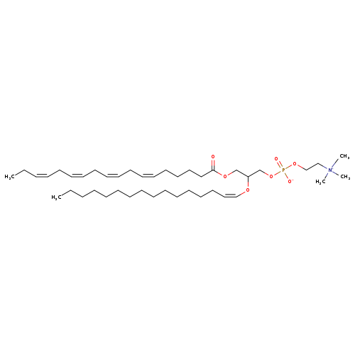 | YMDB02033 | PC(18:4(6Z,9Z,12Z,15Z)/dm18:0) | trimethyl[2-({2-[(1Z)-octadec-1-en-1-yloxy]-3-[(6Z,9Z,12Z,15Z)-octadeca-6,9,12,15-tetraenoyloxy]propyl phosphono}oxy)ethyl]azanium | C44H80NO7P 766.0823 | |