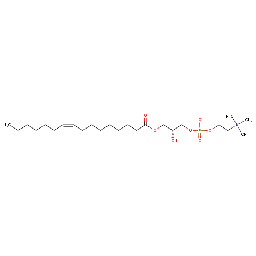 | YMDB01810 | LysoPC(18:1(9Z)) 3542-29-8 | (2-{[(2R)-2-hydroxy-3-[(9Z)-octadec-9-enoyloxy]propyl phosphono]oxy}ethyl)trimethylazanium | C26H52NO7P 521.6673 | |