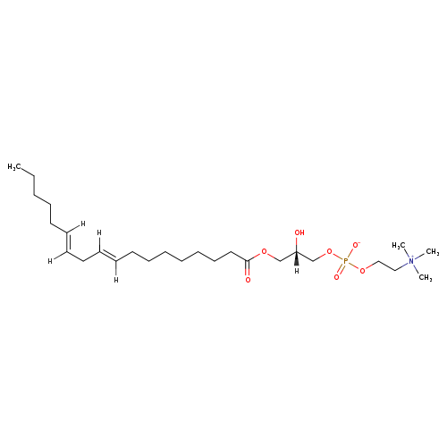 | YMDB02212 | LysoPC(18:2(9Z,12Z)) | (2-{[(2R)-2-hydroxy-3-[(9Z,12Z)-octadeca-9,12-dienoyloxy]propyl phosphono]oxy}ethyl)trimethylazanium | C26H50NO7P 519.6515 | |