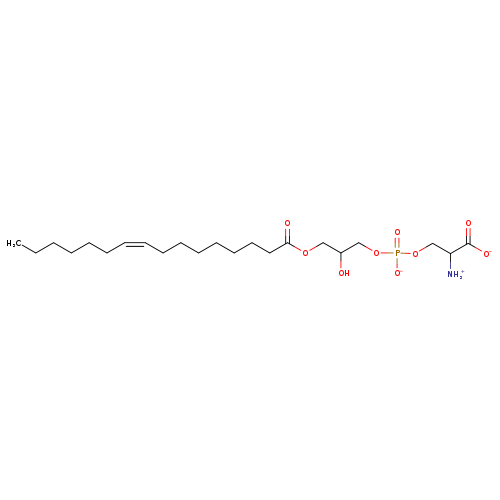 | YMDB13361 | Lyso-PS(18:1(9Z)/0:0) | 2-azaniumyl-3-({2-hydroxy-3-[(9Z)-octadec-9-enoyloxy]propyl phosphono}oxy)propanoate | C24H45NO9P 522.596 | |