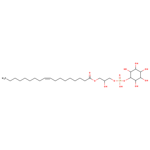 | YMDB13352 | Lyso-PI(0:0/18:1(9Z)) | {3-hydroxy-2-[(9Z)-octadec-9-enoyloxy]propoxy}[(2,3,4,5,6-pentahydroxycyclohexyl)oxy]phosphinic acid | C27H51O12P 598.667 | |