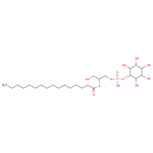 | YMDB13339 | Lyso-PI(16:0/0:0) | [3-(hexadecanoyloxy)-2-hydroxypropoxy][(2,3,4,5,6-pentahydroxycyclohexyl)oxy]phosphinic acid | C25H49O12P 572.629 | |