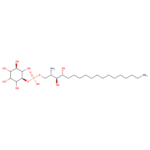 | YMDB01154 | LIPC 18:0;3 | {[(2S,3S,4R)-2-amino-3,4-dihydroxyoctadecyl]oxy}({[(1s,3R)-2,3,4,5,6-pentahydroxycyclohexyl]oxy})phosphinic acid | C24H50NO11P 559.6277 | |