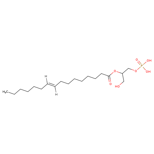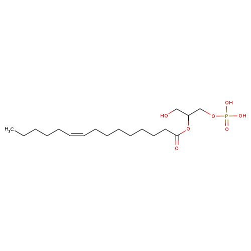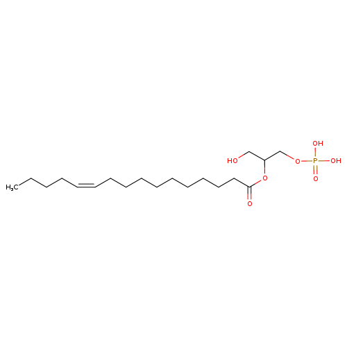| YMDB13302 | LPA(0:0/16:1(9Z)) | {2-[(9Z)-hexadec-9-enoyloxy]-3-hydroxypropoxy}phosphonic acid | C19H37O7P 408.4666 | |