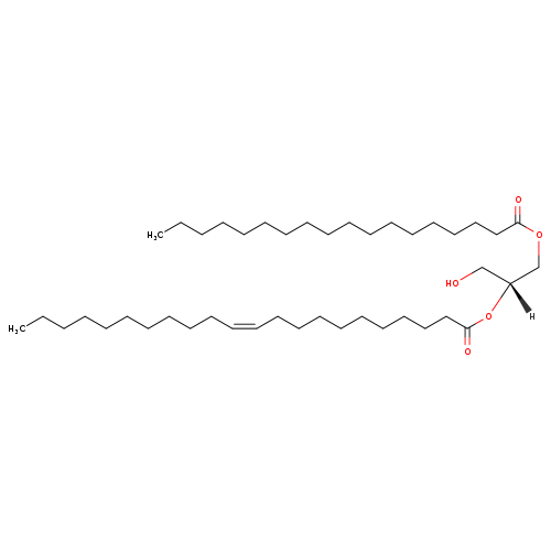 | YMDB13006 | DG(18:0/20:1(13Z)/0:0) | (2R)-1-hydroxy-3-(octadecanoyloxy)propan-2-yl (13Z)-icos-13-enoate | C41H78O5 651.07 |