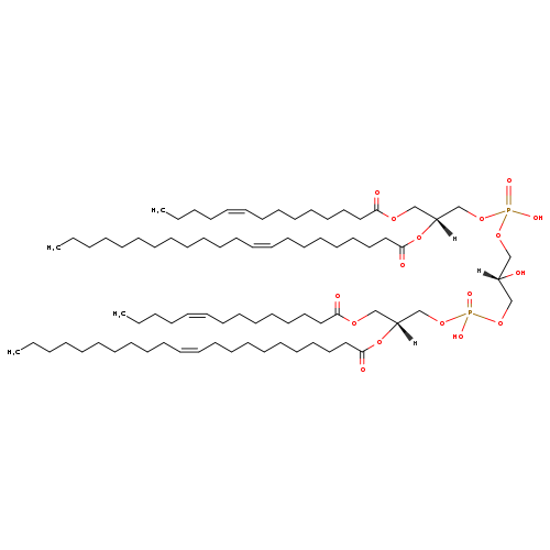 | YMDB09842 | CL(15:0/15:0/15:1(11Z)/27:1(11Z)) | [(2S)-3-({[(2R)-2,3-bis(pentadecanoyloxy)propoxy](hydroxy)phosphoryl}oxy)-2-hydroxypropoxy][(2R)-2-[(11Z)-heptacos-11-enoyloxy]-3-[(11Z)-pentadec-11-enoyloxy]propoxy]phosphinic acid | C81H154O17P2 1462.054 | |
