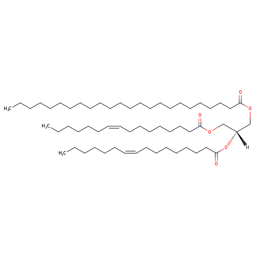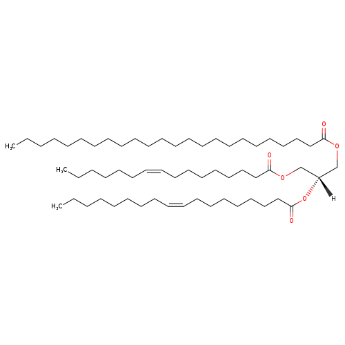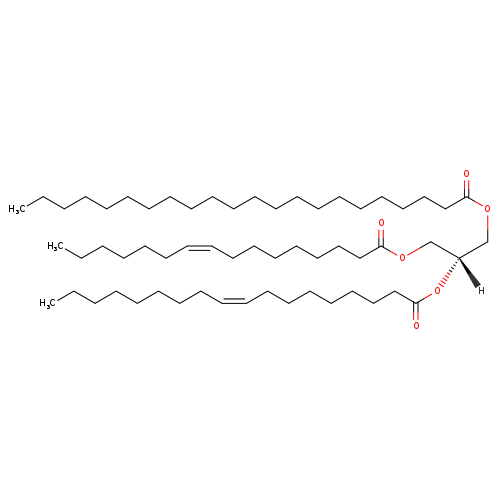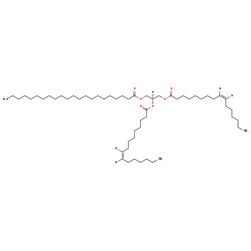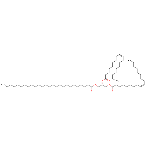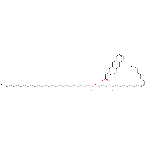 | YMDB01310 | TG(16:1(9Z)/18:1(9Z)/24:0) | (2S)-3-[(9Z)-hexadec-9-enoyloxy]-2-[(9Z)-octadec-9-enoyloxy]propyl tetracosanoate | C61H114O6 943.5543 | |