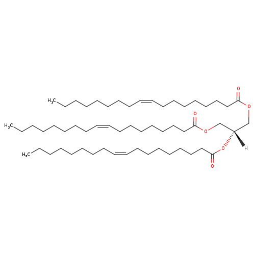 | YMDB01315 | TG(18:1(9Z)/18:1(9Z)/18:1(9Z)) | 1,3-bis[(9Z)-octadec-9-enoyloxy]propan-2-yl (9Z)-octadec-9-enoate | C57H104O6 885.4321 | |