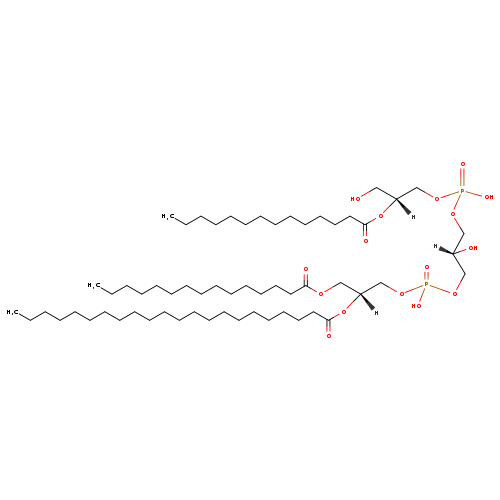 | YMDB11654 | 1-MLCL(0:0/14:0/14:0/24:0) | [(2S)-2-hydroxy-3-({hydroxy[(2R)-3-hydroxy-2-(tetradecanoyloxy)propoxy]phosphoryl}oxy)propoxy][(2R)-2-(tetracosanoyloxy)-3-(tetradecanoyloxy)propoxy]phosphinic acid | C61H120O16P2 1171.563 | |