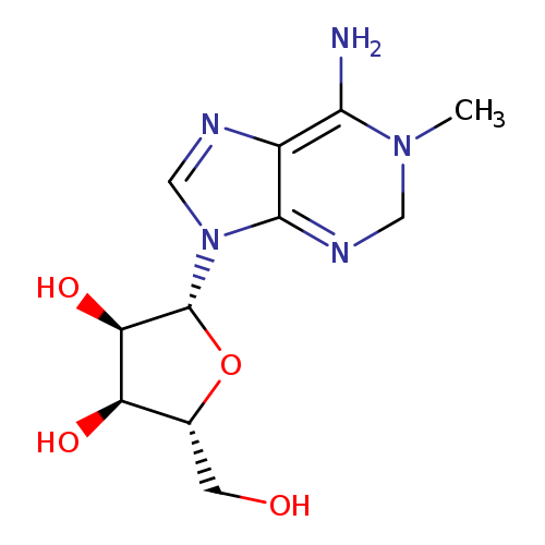 | YMDB01575 | 1-Methyladenosine | (2R,3R,4S,5R)-2-(6-amino-1-methyl-2,9-dihydro-1H-purin-9-yl)-5-(hydroxymethyl)oxolane-3,4-diol | C11H17N5O4 283.2838 | |