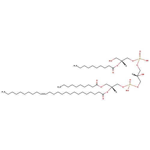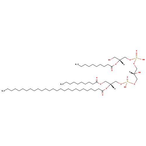 | YMDB11495 | 1-MLCL(0:0/10:0/10:0/24:0) | [(2R)-3-(decanoyloxy)-2-(tetracosanoyloxy)propoxy][(2S)-3-({[(2R)-2-(decanoyloxy)-3-hydroxypropoxy](hydroxy)phosphoryl}oxy)-2-hydroxypropoxy]phosphinic acid | C53H104O16P2 1059.347 | |