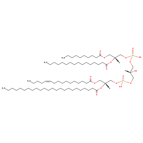 | YMDB04029 | CL(10:0/16:0/16:1(9Z)/20:0) | [(2S)-3-({[(2R)-3-(decanoyloxy)-2-(hexadecanoyloxy)propoxy](hydroxy)phosphoryl}oxy)-2-hydroxypropoxy][(2R)-3-[(9Z)-hexadec-9-enoyloxy]-2-(icosanoyloxy)propoxy]phosphinic acid | C71H136O17P2 1323.8 |