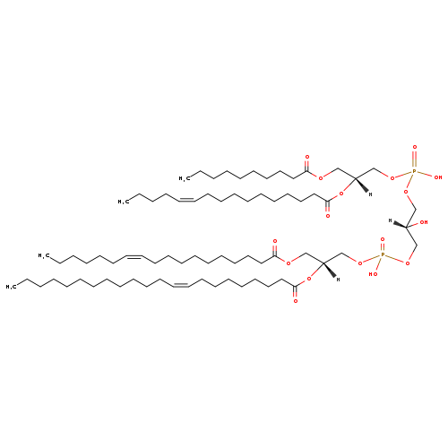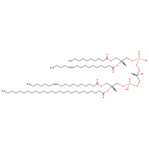 | YMDB04215 | CL(10:0/16:1(11Z)/18:1(11Z)/24:0) | [(2R)-3-({[(2R)-3-(decanoyloxy)-2-[(11Z)-hexadec-11-enoyloxy]propoxy](hydroxy)phosphoryl}oxy)-2-hydroxypropoxy][(2R)-3-[(11Z)-octadec-11-enoyloxy]-2-(tetracosanoyloxy)propoxy]phosphinic acid | C77H146O17P2 1405.946 | |