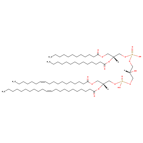 | YMDB05082 | CL(12:0/14:0/18:0/22:0) | [(2R)-2-(docosanoyloxy)-3-(octadecanoyloxy)propoxy][(2S)-3-({[(2R)-3-(dodecanoyloxy)-2-(tetradecanoyloxy)propoxy](hydroxy)phosphoryl}oxy)-2-hydroxypropoxy]phosphinic acid | C75H146O17P2 1381.924 | |