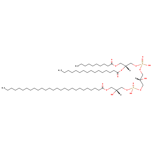 | YMDB11920 | 2-MLCL(10:0/16:0/22:0/0:0) | [(2R)-3-(decanoyloxy)-2-(hexadecanoyloxy)propoxy][(2R)-3-({[(2R)-3-(docosanoyloxy)-2-hydroxypropoxy](hydroxy)phosphoryl}oxy)-2-hydroxypropoxy]phosphinic acid | C57H112O16P2 1115.455 | |