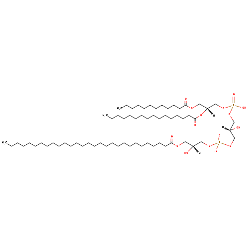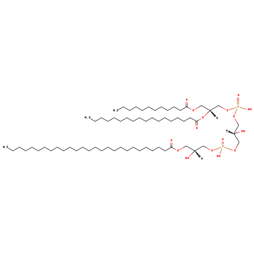 | YMDB11974 | 2-MLCL(12:0/18:0/22:0/0:0) | [(2R)-3-({[(2R)-3-(docosanoyloxy)-2-hydroxypropoxy](hydroxy)phosphoryl}oxy)-2-hydroxypropoxy][(2R)-3-(dodecanoyloxy)-2-(octadecanoyloxy)propoxy]phosphinic acid | C61H120O16P2 1171.563 | |