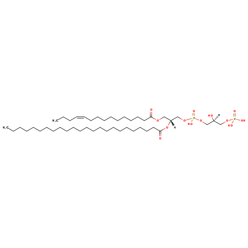 | YMDB14322 | PGP(15:1(11Z)/24:0) | [(2S)-2-hydroxy-3-({hydroxy[(2R)-3-[(11Z)-pentadec-11-enoyloxy]-2-(tetracosanoyloxy)propoxy]phosphoryl}oxy)propoxy]phosphonic acid | C45H88O13P2 899.134 |