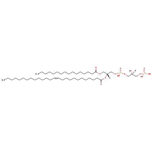 | YMDB14380 | PGP(16:0/20:1(13Z)) | [(2S)-3-({[(2R)-3-(hexadecanoyloxy)-2-[(13Z)-icos-13-enoyloxy]propoxy](hydroxy)phosphoryl}oxy)-2-hydroxypropoxy]phosphonic acid | C42H82O13P2 857.053 | |