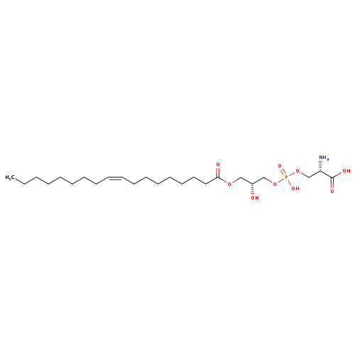 | YMDB01258 | PS(18:1(9Z)/0:0) | (2S)-2-amino-3-({hydroxy[(2R)-2-hydroxy-3-[(9Z)-octadec-9-enoyloxy]propoxy]phosphoryl}oxy)propanoic acid | C24H46NO9P 523.5971 | |