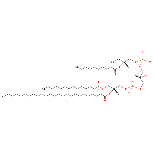 | YMDB11496 | 1-MLCL(0:0/10:0/12:0/22:0) | [(2S)-3-({[(2R)-2-(decanoyloxy)-3-hydroxypropoxy](hydroxy)phosphoryl}oxy)-2-hydroxypropoxy][(2R)-2-(docosanoyloxy)-3-(dodecanoyloxy)propoxy]phosphinic acid | C53H104O16P2 1059.347 | |
