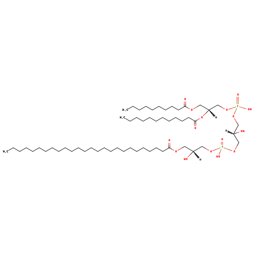 | YMDB11596 | 1-MLCL(0:0/10:0/12:0/26:0) | [(2S)-3-({[(2R)-2-(decanoyloxy)-3-hydroxypropoxy](hydroxy)phosphoryl}oxy)-2-hydroxypropoxy][(2R)-3-(dodecanoyloxy)-2-(hexacosanoyloxy)propoxy]phosphinic acid | C57H112O16P2 1115.455 | |