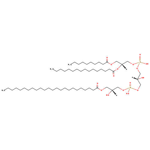 | YMDB11620 | 1-MLCL(0:0/10:0/16:0/24:0) | [(2S)-3-({[(2R)-2-(decanoyloxy)-3-hydroxypropoxy](hydroxy)phosphoryl}oxy)-2-hydroxypropoxy][(2R)-3-(hexadecanoyloxy)-2-(tetracosanoyloxy)propoxy]phosphinic acid | C59H116O16P2 1143.509 | |