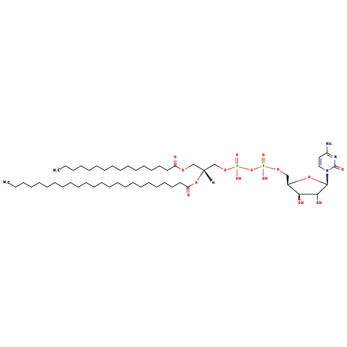 | YMDB12327 | CDP-DG(16:0/24:0) | {[(2R,3R,5R)-5-(4-amino-2-oxo-1,2-dihydropyrimidin-1-yl)-3,4-dihydroxyoxolan-2-yl]methoxy}({[(2R)-3-(hexadecanoyloxy)-2-(tetracosanoyloxy)propoxy](hydroxy)phosphoryl}oxy)phosphinic acid | C52H97N3O15P2 1066.302 | |