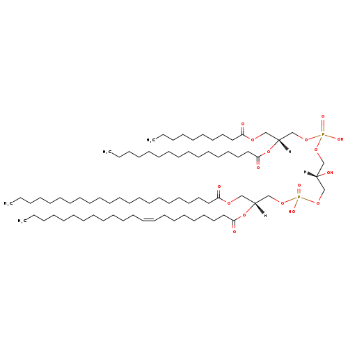 | YMDB11920 | 2-MLCL(10:0/16:0/22:0/0:0) | [(2R)-3-(decanoyloxy)-2-(hexadecanoyloxy)propoxy][(2R)-3-({[(2R)-3-(docosanoyloxy)-2-hydroxypropoxy](hydroxy)phosphoryl}oxy)-2-hydroxypropoxy]phosphinic acid | C57H112O16P2 1115.455 | |