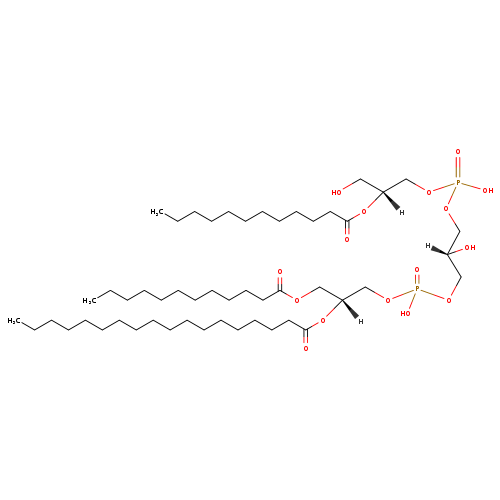 | YMDB11461 | 1-MLCL(0:0/12:0/12:0/18:0) | [(2R)-3-(dodecanoyloxy)-2-(octadecanoyloxy)propoxy][(2S)-3-({[(2R)-2-(dodecanoyloxy)-3-hydroxypropoxy](hydroxy)phosphoryl}oxy)-2-hydroxypropoxy]phosphinic acid | C51H100O16P2 1031.293 | |