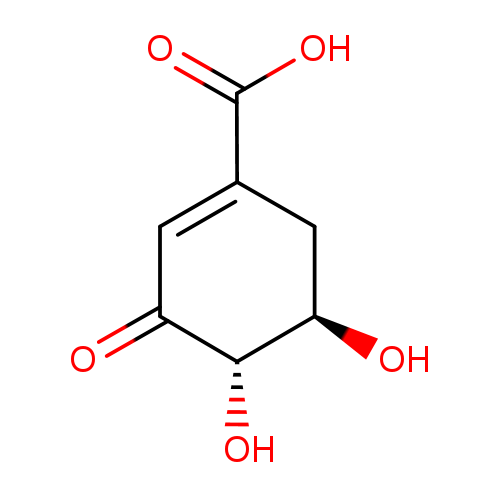 | YMDB00390 | 3-Dehydroshikimic acid 27655-56-7 | (4S,5R)-4,5-dihydroxy-3-oxocyclohex-1-ene-1-carboxylic acid | C7H8O5 172.1354 | |