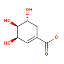 | YMDB00216 | Shikimic acid 138-59-0 | (3R,4S,5R)-3,4,5-trihydroxycyclohex-1-ene-1-carboxylic acid | C7H10O5 174.1513 | |