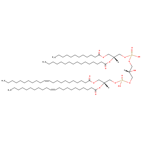 | YMDB11929 | 2-MLCL(16:0/16:0/16:0/0:0) | [(2R)-2,3-bis(hexadecanoyloxy)propoxy][(2R)-3-({[(2R)-3-(hexadecanoyloxy)-2-hydroxypropoxy](hydroxy)phosphoryl}oxy)-2-hydroxypropoxy]phosphinic acid | C57H112O16P2 1115.455 | |