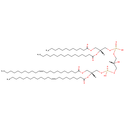 | YMDB11929 | 2-MLCL(16:0/16:0/16:0/0:0) | [(2R)-2,3-bis(hexadecanoyloxy)propoxy][(2R)-3-({[(2R)-3-(hexadecanoyloxy)-2-hydroxypropoxy](hydroxy)phosphoryl}oxy)-2-hydroxypropoxy]phosphinic acid | C57H112O16P2 1115.455 | |