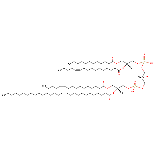 | YMDB06130 | CL(12:0/16:1(11Z)/16:1(11Z)/28:1(11Z)) | [(2R)-3-(dodecanoyloxy)-2-[(11Z)-hexadec-11-enoyloxy]propoxy][(2R)-3-({[(2R)-3-[(11Z)-hexadec-11-enoyloxy]-2-[(12Z)-octacos-12-enoyloxy]propoxy](hydroxy)phosphoryl}oxy)-2-hydroxypropoxy]phosphinic acid | C81H152O17P2 1460.038 | |