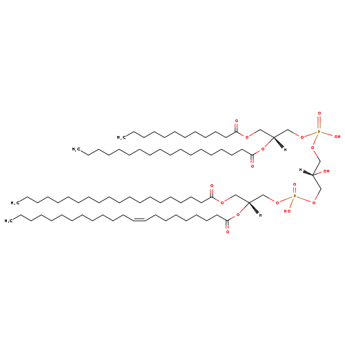 | YMDB11948 | 2-MLCL(12:0/18:0/20:0/0:0) | [(2R)-3-(dodecanoyloxy)-2-(octadecanoyloxy)propoxy][(2R)-2-hydroxy-3-({hydroxy[(2R)-2-hydroxy-3-(icosanoyloxy)propoxy]phosphoryl}oxy)propoxy]phosphinic acid | C59H116O16P2 1143.509 | |