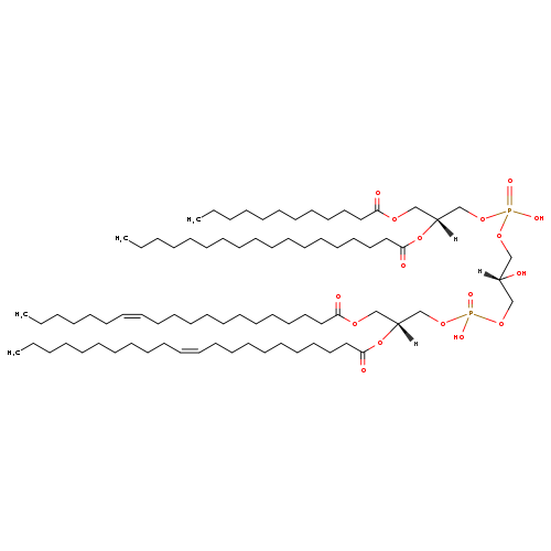 | YMDB11929 | 2-MLCL(16:0/16:0/16:0/0:0) | [(2R)-2,3-bis(hexadecanoyloxy)propoxy][(2R)-3-({[(2R)-3-(hexadecanoyloxy)-2-hydroxypropoxy](hydroxy)phosphoryl}oxy)-2-hydroxypropoxy]phosphinic acid | C57H112O16P2 1115.455 | |