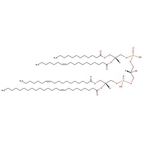 | YMDB11929 | 2-MLCL(16:0/16:0/16:0/0:0) | [(2R)-2,3-bis(hexadecanoyloxy)propoxy][(2R)-3-({[(2R)-3-(hexadecanoyloxy)-2-hydroxypropoxy](hydroxy)phosphoryl}oxy)-2-hydroxypropoxy]phosphinic acid | C57H112O16P2 1115.455 | |