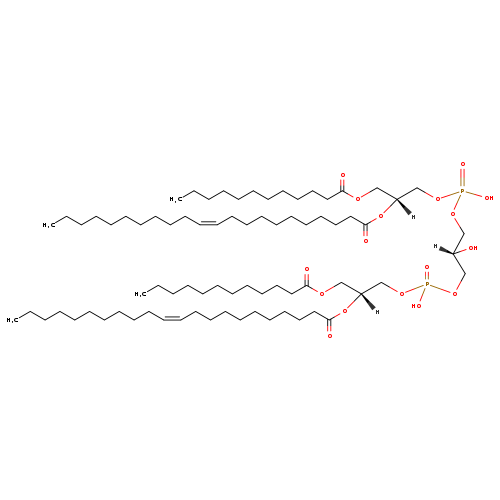 | YMDB11929 | 2-MLCL(16:0/16:0/16:0/0:0) | [(2R)-2,3-bis(hexadecanoyloxy)propoxy][(2R)-3-({[(2R)-3-(hexadecanoyloxy)-2-hydroxypropoxy](hydroxy)phosphoryl}oxy)-2-hydroxypropoxy]phosphinic acid | C57H112O16P2 1115.455 | |