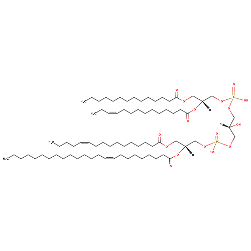 | YMDB11929 | 2-MLCL(16:0/16:0/16:0/0:0) | [(2R)-2,3-bis(hexadecanoyloxy)propoxy][(2R)-3-({[(2R)-3-(hexadecanoyloxy)-2-hydroxypropoxy](hydroxy)phosphoryl}oxy)-2-hydroxypropoxy]phosphinic acid | C57H112O16P2 1115.455 | |