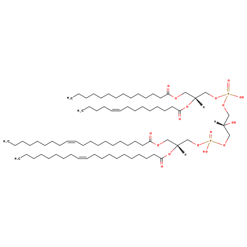 YMDB07087CL(14:0/14:1(9Z)/20:1(11Z)/20:1(11Z))[(2R)-3-({[(2R)-2,3-bis[(11Z)-icos-11-enoyloxy]propoxy](hydroxy)phosphoryl}oxy)-2-hydroxypropoxy][(2R)-2-[(9Z)-tetradec-9-enoyloxy]-3-(tetradecanoyloxy)propoxy]phosphinic acidC77H144O17P2