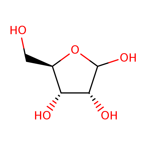 | YMDB00253 | D-Ribose 50-69-1 | (3R,4S,5R)-5-(hydroxymethyl)oxolane-2,3,4-triol | C5H10O5 150.1299 | |
