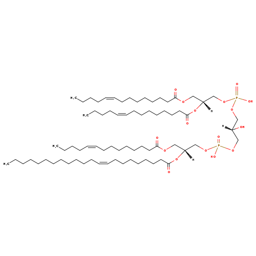 | YMDB09001 | CL(14:1(9Z)/14:1(9Z)/14:1(9Z)/22:1(9Z)) | [(2S)-3-({[(2R)-2,3-bis[(9Z)-tetradec-9-enoyloxy]propoxy](hydroxy)phosphoryl}oxy)-2-hydroxypropoxy][(2R)-2-[(9Z)-docos-9-enoyloxy]-3-[(9Z)-tetradec-9-enoyloxy]propoxy]phosphinic acid | C73H134O17P2 1345.806 | |
